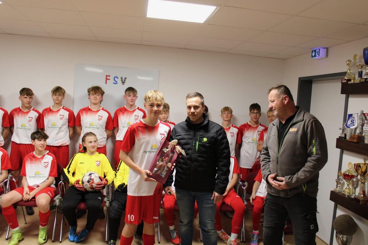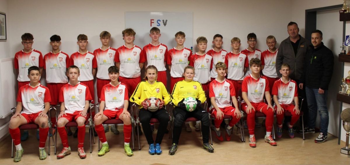 Am Donnerstag, dem 30. Oktober 2025, erhielt die C1-Juniorenmannschaft der Spielgemeinschaft einen neuen Trikotsatz. Zu diesem Anlass fanden sich alle Spieler zum Training auf der „Karl-Ebhardt-Sportstätte“ ein, um die neue Spielkleidung offiziell von den Sponsoren entgegenzunehmen. Die „Agrargenossenschaft Gößnitz“, vertreten durch die Vorstände Lucas Pätzold und Jens Kleindienst, unterstützte die Mannschaft als neuer Sponsor. Das Unternehmen bewirtschaftet Flächen in der Umgebung von Gößnitz, Nörditz, Nitzschka und Podelwitz und hat seinen Firmensitz in Bornshain. An dieser Stelle sprechen wir unseren herzlichen Dank für die großzügige Unterstützung aus. Am Samstag, dem 1. November 2025, trat die Mannschaft zum Auswärtsspiel bei ZFC Meuselwitz II an. Vor Beginn der Partie standen die Teams auf den Tabellenplätzen zwei und drei. Der Anstoß erfolgte um 09:00 Uhr unter Leitung von Schiedsrichter Heiko Grimmer. Aufgrund von Urlaubs-, Verletzungs- und Krankheitsausfällen reiste die Mannschaft mit lediglich elf Spielern an. Ziel war es dennoch, dem Gegner Paroli zu bieten und die vorhandenen Kräfte effektiv einzusetzen. Die Startaufstellung wurde entsprechend angepasst. In den Anfangsminuten tat sich das Team schwer und ermöglichte dem Gastgeber frühzeitig Spielanteile. Bereits in der vierten Minute fiel nach einem Angriff über die linke Abwehrseite das 1:0 für den ZFC Meuselwitz. Auch im weiteren Verlauf der ersten Halbzeit blieb der Druck des Gegners bestehen; in der 14. Minute erhöhte Meuselwitz auf 2:0. Vier Minuten später führte ein Handspiel im Strafraum zu einem berechtigten Elfmeter, der sicher verwandelt wurde. Bis zur Halbzeit hielt das Team das Ergebnis bei 3:0. In der Halbzeitpause wurden Verbesserungspotenziale besprochen und taktische Änderungen vorgenommen. In der zweiten Hälfte präsentierte sich die Spielgemeinschaft deutlich gefestigter und konnte zu eigenen Angriffsaktionen kommen. Dennoch erhöhte der ZFC Meuselwitz in der 43. Minute auf 4:0. Die Mannschaft zeigte daraufhin geschlossene Moral und Einsatzbereitschaft. In der 51. Minute erzielte Luis nach Vorarbeit von Oskar den Anschlusstreffer. Beflügelt vom Tor, dominierte die Spielgemeinschaft in der Folge das Geschehen. Defensiv hielten Vincent und Maxi das eigene Tor weitgehend sauber. In der 63. Minute traf erneut Luis nach einem abgewehrten Schuss und konsequenter Balleroberung sehenswert zum 4:2. Trotz weiterer Bemühungen reichte die verbleibende Zeit nicht für ein weiteres Tor. Das nächste Pflichtspiel bestreitet die Mannschaft am Sonntag, dem 9. November 2025, im Kreispokal gegen Bad Köstritz. Fazit: Die Mannschaft zeigte große Einsatzbereitschaft und Zusammenhalt. Auf dieser Leistung lässt sich für die kommenden Aufgaben aufbauen.