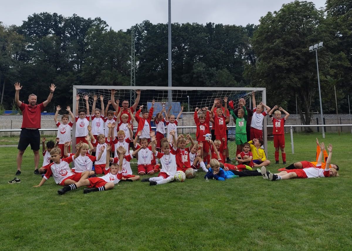 Am vergangenen Samstag (16.08.25) fand auf den Sportplatz in Gößnitz das Saisoneröffnungsturnier unserer E-Junioren (U10 & U11) statt. Neben den 13 Gastmannschaften, schickte unsere Spielgemeinschaft (SpG) Schmölln/Gößnitz drei eigene Mannschaften, die auf vier Feldern im klassischen 1-7 (8vs8) um Medaillen und Pokale kämpften, ins Rennen.