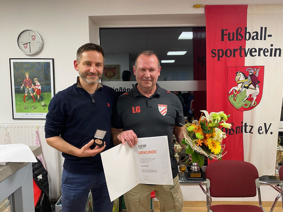 Eine besondere Überraschung erwartete unseren Vorsitzenden Lutz Goerke. Vom Kreissportbund wurde Ihm die Sport-Ehrenplakette durch Ulf Schnerrer vom Kreissportbund Altenburger Land überreicht, in Würdigung seiner langjährigen Verdienste für den Verein. Herzlichen Glückwunsch!