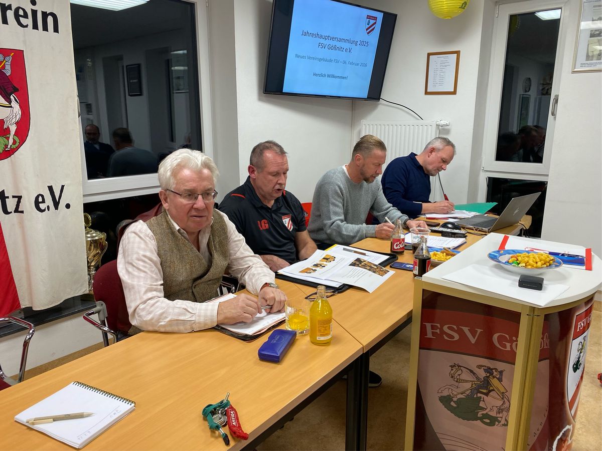 Auch in diesem Jahr waren die Mitglieder des FSV Gößnitz wieder eingeladen bei der Jahreshauptversammlung, um auf das vergangene Jahr zurückzublicken. Der Clubraum war bis auf den letzten Platz gefüllt und auch viele geladene Gäste waren erschienen. Zu Gast waren der Bürgermeister von Gößnitz Patrick Albrecht, Klaus Hübschmann vom KFA, Ulf Schnerrer vom KSB sowie unser Ehrenvorsitzender Ralf Köhler sowie Sponsoren.