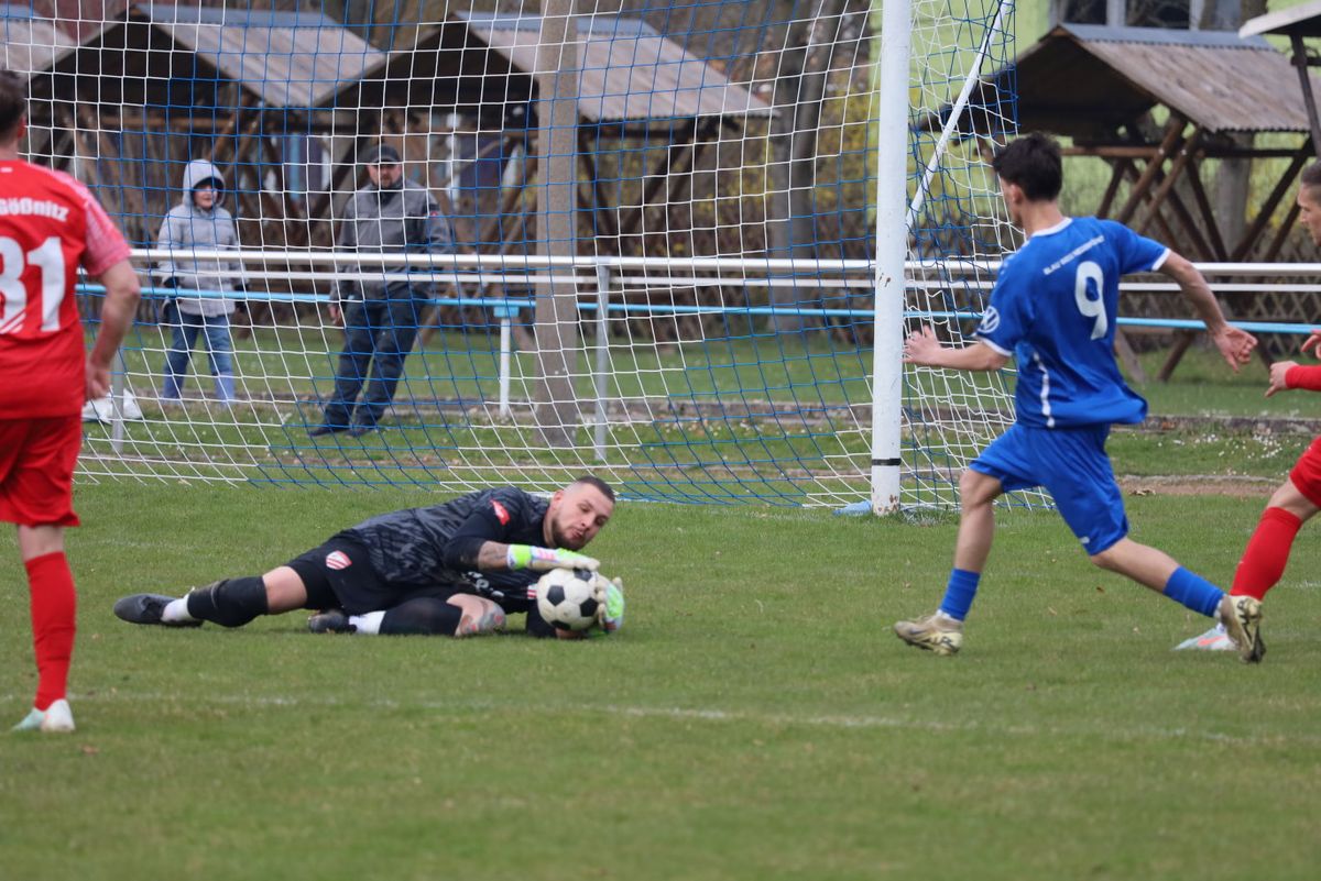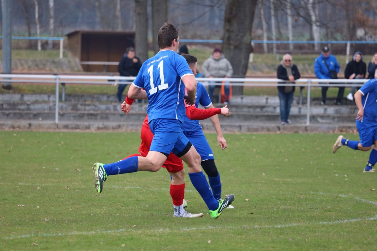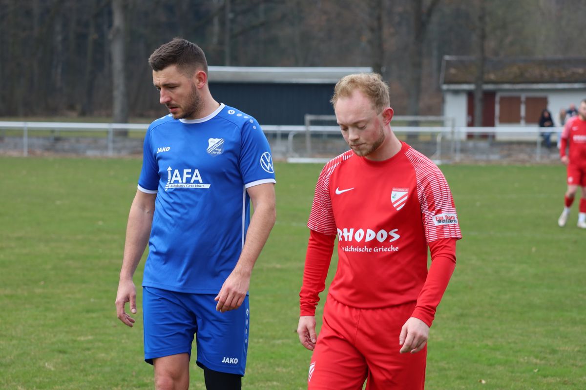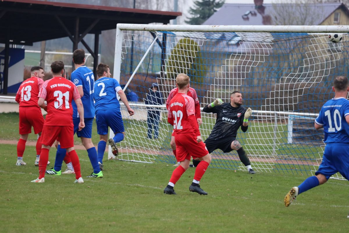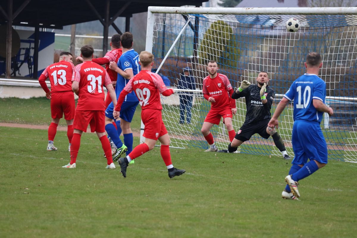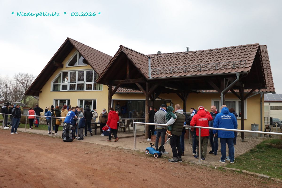 Die Fußball–Kreisoberliga Ostthüringen und südlich von Gera Richtung Saalfeld. Im grünen Herz rollte vor =62 Zuschauern der Ball. Der SV Blau–Weiß Niederpöllnitz besiegte mit 3:1 Toren unsere Pleißstädter Notelf Gößnitz/Zehma. Das Dilemma begann schon vor dem Anpfiff. Wir von der Pleiße, elf gute Freunde standen auf dem Rasen, in roter Spielkleidung und Stollen unter den Füßen und auf der dazugehörigen Gästebank saß nur ein (Wechsel)Torwart. Und da war noch unser Trainergespann Falk Sporberth, Marcel Merkel. Begründet ist es durch Verletzungen, Sperren und Berufliches. Bei kühl anfühlenden Temperaturen erwiesen sich die Blau–Weißen als die Elf mit leichtem Chancenplus und unser Torhüter Nico Schmitt verhinderte mehrmals Schlimmeres. Doch die erste Torchance im Spiel hatten wir nach zehn Minuten, dem ein Eckball vorausging. Doch es kam anders. Nach knapp einer Viertelstunde fiel das 1:0 gegen uns, Torschütze Paul Menzel und nach knapp eine halben Stunde fiel das 2:0, Torschütze Tayeb Ahmadi. Was folgte war ein sogenannter tödlicher Paß von Nils Rudolph, den Florian Korb zentral aufnahm, lief und zum 2:1 Anschlußtreffer einschoß. Nur wenige Minuten später kam vom Schiedsrichter Jonas Kißhauer der Pausenpfiff. Assistiert wurde er von Lucas Heiner und Benjamin Dzankovic. Die meisten Fans begaben sich zum modernen Vereinsheim mit Imbissangeboten. Eingefügt, der Stadionsprecher machte seine Ansagen sportlich fair und mit Power, ähnlich wie das der Autor und Fotograf (aus Regis–Breitingen) von Gößnitzer Heimspielen kennt.