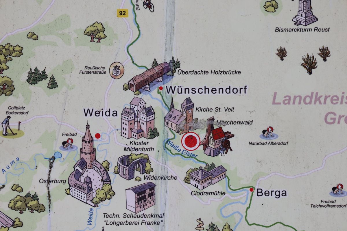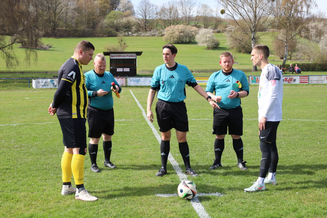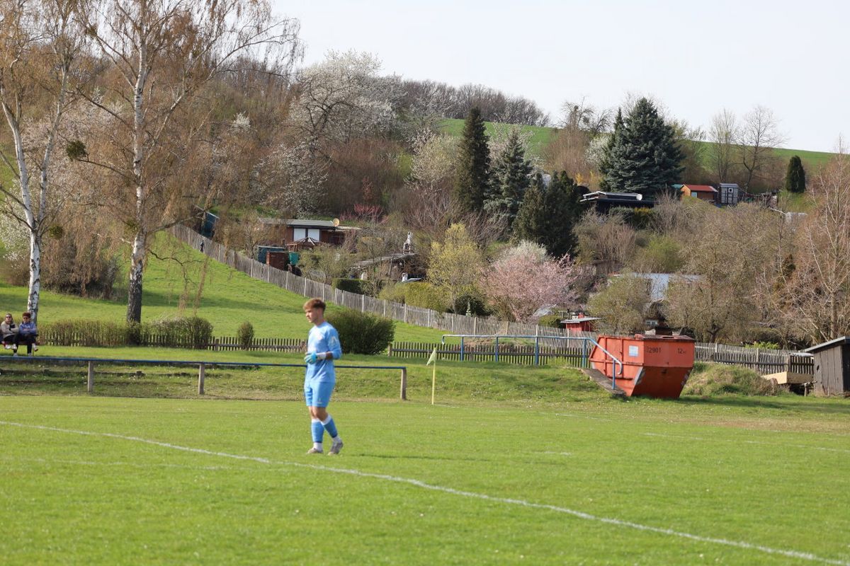 Weida im Vogtland, Fluß Elster, Spielort Wünschendorf und die Fußball–KOL Ostthüringen. Vor 82 Zuschauern rollte der Ball, SPG FC Thüringen Weida II 1:1 (1:1) SG Gößnitz/Zehma, also Unentschieden. Es begann mit einem schnellen Heim–1:0, Torschütze Sebastian Krehl nach fünf Minuten. Nur vier Minuten später auf der Gegenseite, auf Links kam von Maurice Tauber ein langer Einwurf, den Stefan Hanusch verlängerte und Florian Korb aus zentraler Position zum 1:1 einschoß. Kurz danach verfehlte ein 25m–Schuß von Paul Kaiser das Heimtor. Nur drei Minuten später, unser Max Köhler wurde im Strafraum von den Beinen geholt und der Schiedsrichter zeigte zur Eckfahne, kein Elfmeter, also Eckball. In der kurzen Nachspielzeit vereitelte unser Torwart Nico Schmitt eine Torchance der Wünschendorfer. Pausenpfiff vom Schiedsrichter Jonas Kießhauer, assistiert von Lucas Heiner und Michael Rybicki. Die meisten Fans begaben sich zum Imbisshäuschen. Und eingefügt, teils waren grenzwertige Fouls der Wünschendorfer.