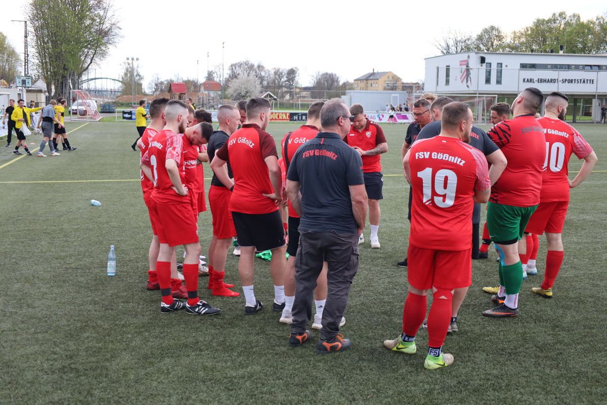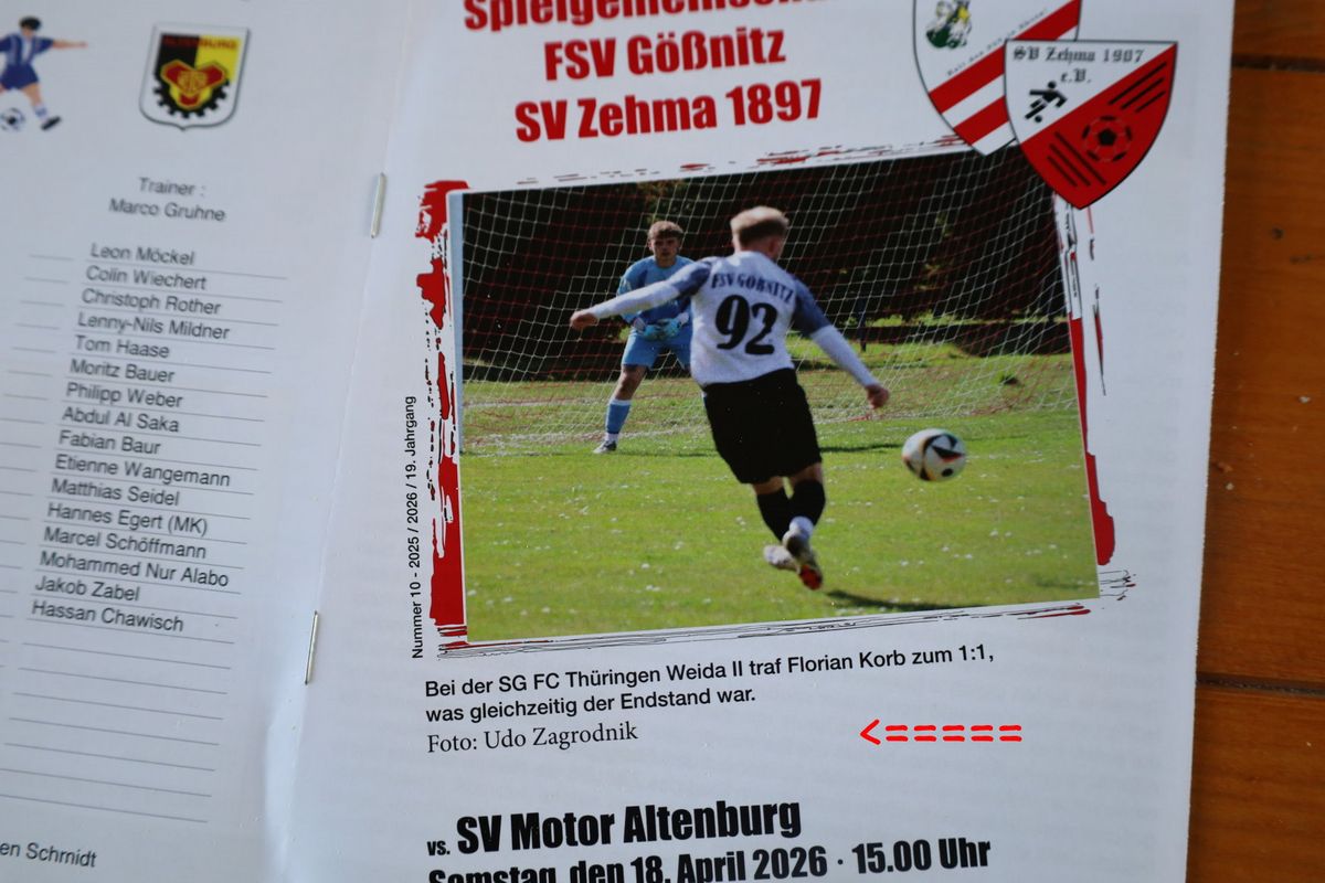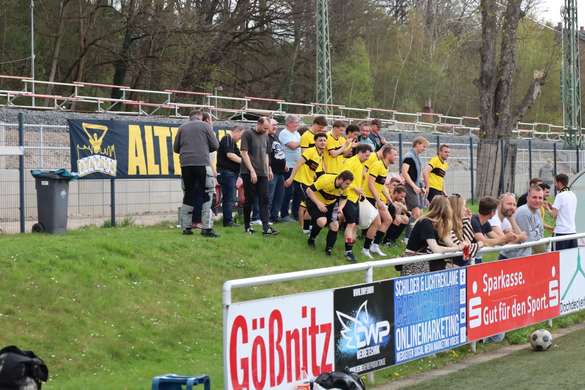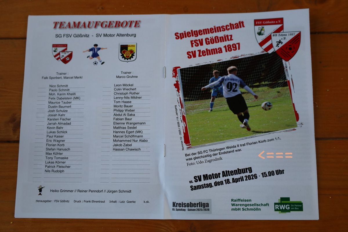Die Fußball–KOL Ostthüringen, das Altenburger Land, Frühlingswetter und 165 (Derby)Zuschauer. Vor dem Anstoß des wichtigen (Keller)Spiels mit dem Warmlaufen der Teams, da ergriff der Autor und Fotograf das Wort mit einer Poweransage, wie er das rund drei Jahrzehnte lang in seiner Heimat (SV) Regis–Breitingen tat (aktuell kein Herrenteam am Spielbetrieb). Das Mikrophon übergeben, kam die Ansage vom (Heim) Mike Köhler mit den Teamaufstellungen und dann rollte zwischen Pleiße und Bahn der Fußball, unsere SG Gößnitz/Zehma gegen Motor Altenburg. Bereits nach fünf Minuten hatte unser Paul Kaiser die große Chance, doch er scheiterte am Torwart Leon Möckel. In der Folge blieb es ein offenes Spiel. Nach einer knappen halben Stunde scheiterte unser Nils Rudolph am Torwart und in der Folge klärte Colin Weichert auf der Torlinie. Im Gegenzug fiel das 0:1, Torschütze Mohammad Nur Alabo. Das gab den Skatstädtern Auftrieb. Kurz vom Pausenpfiff folgte ein Doppelschlag, das 0:2 Moritz Bauer (nach groben Abwehrschnitzer) und das 0:3 Mohammad Nur Alabo. Wenig später kam vom souveränen Schiedsrichter Heiko Grimmer der Pausenpfiff. Assistiert wurde er von Reiner Penndorf und Jürgen Schmidt. Die meisten Fans begaben sich zum Imbisshäuschen.