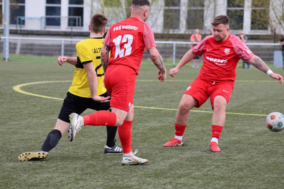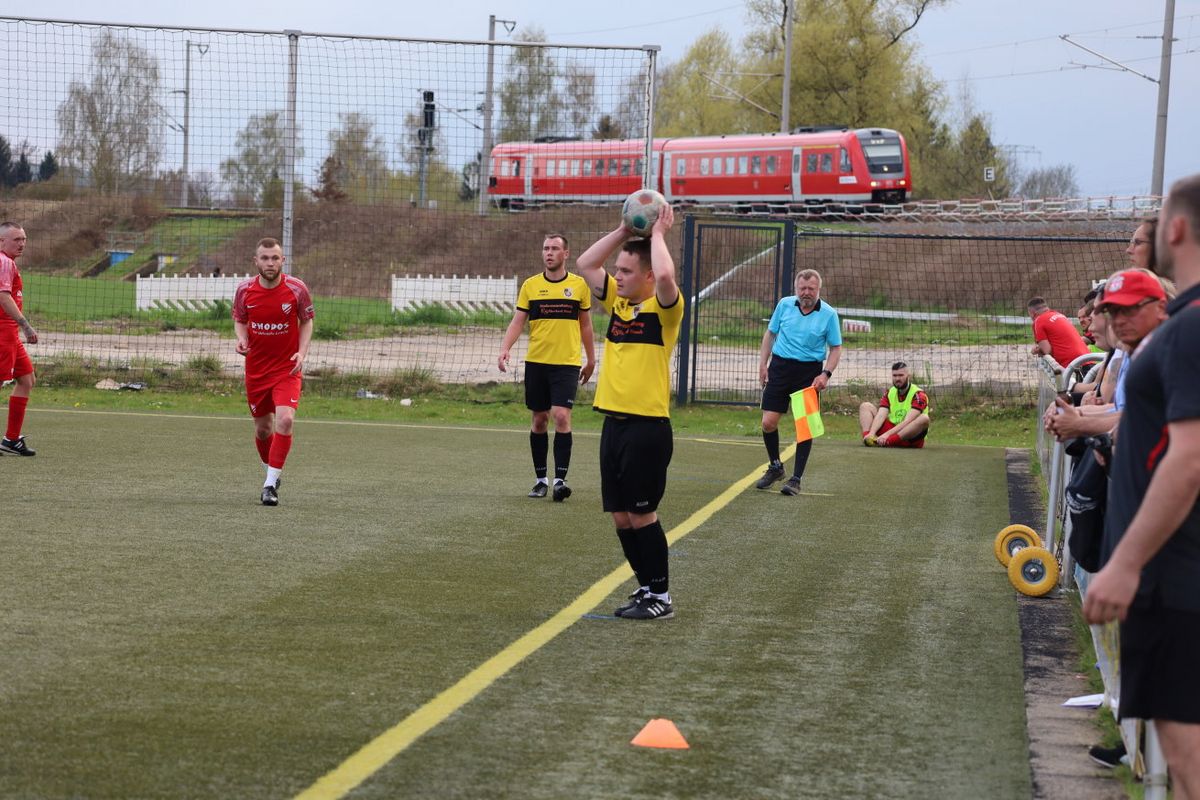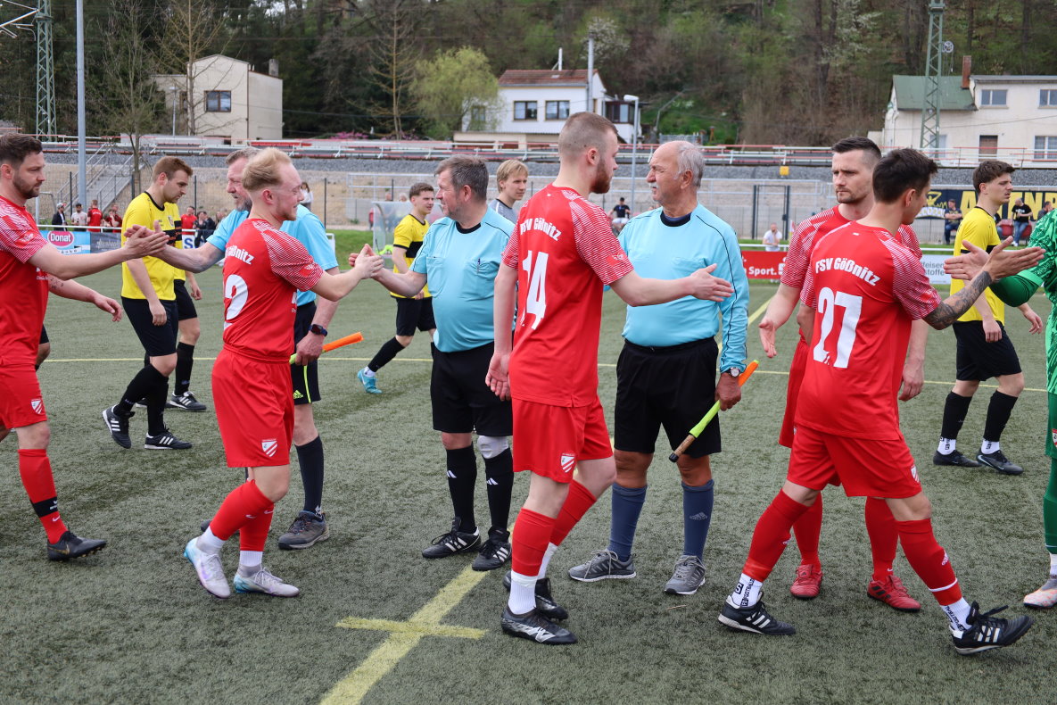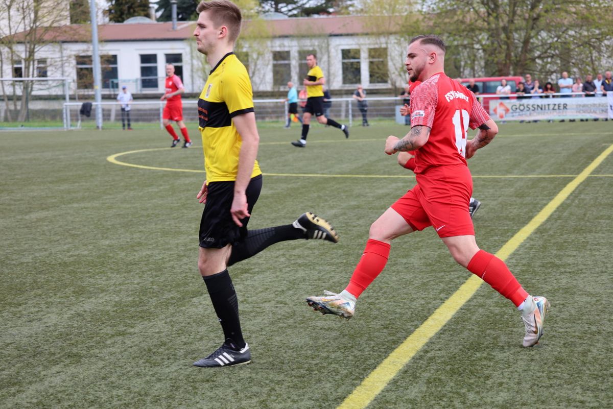 Die Fußball–KOL Ostthüringen, das Altenburger Land, Frühlingswetter und 165 (Derby)Zuschauer. Vor dem Anstoß des wichtigen (Keller)Spiels mit dem Warmlaufen der Teams, da ergriff der Autor und Fotograf das Wort mit einer Poweransage, wie er das rund drei Jahrzehnte lang in seiner Heimat (SV) Regis–Breitingen tat (aktuell kein Herrenteam am Spielbetrieb). Das Mikrophon übergeben, kam die Ansage vom (Heim) Mike Köhler mit den Teamaufstellungen und dann rollte zwischen Pleiße und Bahn der Fußball, unsere SG Gößnitz/Zehma gegen Motor Altenburg. Bereits nach fünf Minuten hatte unser Paul Kaiser die große Chance, doch er scheiterte am Torwart Leon Möckel. In der Folge blieb es ein offenes Spiel. Nach einer knappen halben Stunde scheiterte unser Nils Rudolph am Torwart und in der Folge klärte Colin Weichert auf der Torlinie. Im Gegenzug fiel das 0:1, Torschütze Mohammad Nur Alabo. Das gab den Skatstädtern Auftrieb. Kurz vom Pausenpfiff folgte ein Doppelschlag, das 0:2 Moritz Bauer (nach groben Abwehrschnitzer) und das 0:3 Mohammad Nur Alabo. Wenig später kam vom souveränen Schiedsrichter Heiko Grimmer der Pausenpfiff. Assistiert wurde er von Reiner Penndorf und Jürgen Schmidt. Die meisten Fans begaben sich zum Imbisshäuschen.