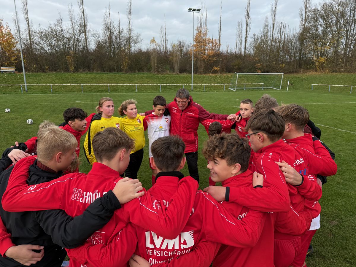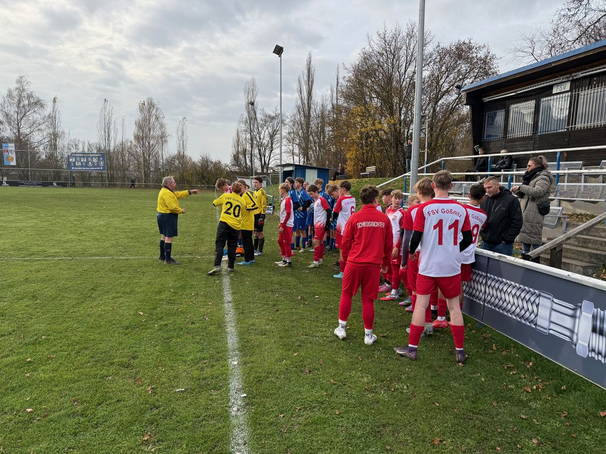 Am Samstag, den 15.11.2025 reiste unsere SpG Schmölln C1 Junioren zum ersten Punktspiel der Rückrunde, zum FSV Ronneburg auf dem Rasenplatz des Sportzentrums Zeitzer Straße. Das Spiel begann bereits um 09:30 Uhr unter der Leitung des Schiedsrichters Matthias Kommant, aus Gera. Der FSV Ronneburg war schon im Hinspiel in Gößnitz ein starker Gegner und wir gewann das Spiel in Gößnitz, recht knapp mit 2:1. Die letzten Ergebnisse unseres Gastgebers zeigten einen klaren Aufwärtstrend und der Platz Vier (wir Dritter) in der Tabelle dokumentierte dieses noch zusätzlich. Die Ansprache vor dem Spiel machte diese auch deutlich, dass wir hier auf Gegenwehr tre en werden und es kein leichtes Spiel werden sollte. Die ungewohnten Platzverhältnisse auf Rasen sollten ebenfalls für unsere Mannschaft ein zusätzliches Warnsignal bedeuten, dieses Spiel konzentriert und kämpferisch anzugehen. Die ersten Minuten zeigten auch schon, dass der Gastgeber an diesem Tag mit Uhrzeit und Rasenplatz besser zurechtkamen, da sie mit langen Bällen zum Torerfolg kommen wollten und bessere Chancen als wir uns dadurch erarbeiteten. So passierte es dann auch in der 20 Minute über unsere rechte Abwehrseite, dass wir einen Pass in unseren Strafraum nicht verhindern konnten und der FSV Ronneburg zu diesem Zeitpunkt verdienten, 1:0 einschoss. Unsere Mannschaft zeigte sie von diesem Gegentor unberührt und scha te es nicht im Mittelfeld das Spiel in dem Gri zu bekommen. Vereinzelt über unsere rechte Angri sseite konnten wir etwas Gefahr entwickeln und unsere Abschlüsse waren zu ungenau, oder sichere Beute des Torwarts. Aber die Fans, die es mit unserer Mannschaft nach Ronneburg gekommen waren, sollten noch zweimal in der ersten Hälfte eine kleine Aufregung verspüren, als Maxi v.C. frei vor dem Tor, den Ball nicht unterbringen konnte und als Omar elfmetergerecht gefoult wurde, aber der Pfi des Schiedsrichters ausblieb. So ging es mit einem Rückstand in die Halbzeitpause. Es kamen nach der Halbzeit frische Kräfte und die klaren Worte der Trainer sollten auch ihre Wirkung kurzfristig zeigen. Unser Jungs kamen besser ins Spiel und hatten nun auch Übergewicht an Spielanteilen im Mittelfeld. Die richtigen Großchancen oder sogar eine Torerzielung sprangen nicht aus diesen Vorteilen heraus. Ronneburg blieb immer etwas gefährlich und spielten weiter lange Bälle. In der 60. Minute sollte es dann soweit sein, das ein langer Ball einen Ronneburger in unserer Hälfte erreichte und dieser mit fast direkten Schuss auf unser Tor das 2:0 erzielte, wobei unser Maxi im Tor dabei seinen Anteil an diesem Tor beitrug. Das Spiel sollte dann auch mit diesem 2:0 für den FSV Ronneburg zu Ende gehen. Fazit: Der FSV Ronneburg wollte diesen Sieg mehr als wir, da bei uns mangelnde Einstellung und die Fehlersuche bei den Platzverhältnisse und Schiedsrichter uns zu stark behinderten.