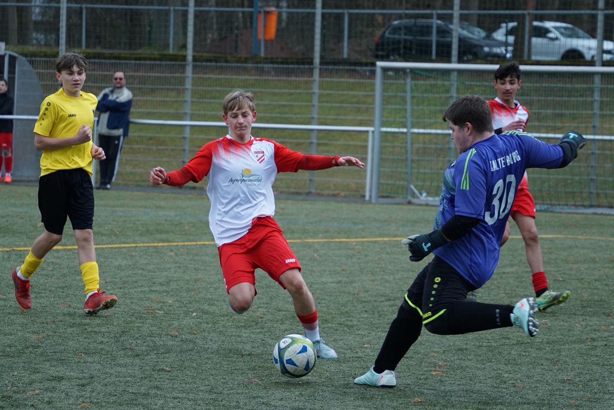 Es war wieder Sonntag, der 15.03.2026 und unsere C1 Junioren der Spielgemeinschaft Schmölln/ Gößnitz, mussten um 10:30 Uhr in der Skatbank -Arena auf dem Kunstrasenplatz antreten. Der Gastgeber war der SV Motor Altenburg. Das Spiel bei recht kühlen Temperaturen, unter der guten und sicheren Leitung von Schiedsrichter David Mahmud vom SV BW Zechau- Kriebitzsch, verfolgten ca. 25 Zuschauer. Das Spiel begann in den ersten Minuten mit abtasten auf beiden Seiten, da wir nicht genau über die aktuelle Stärke des Gastgebers uns ein Bild machen konnten. Unsere Mannschaft mit einem sehr guten Ergebnis aus der Vorwoche nach Altenburg angereist, wollte das Spiel aber unbedingt gewinnen und so war auch die Ansprache vom Trainer Lutz vor dem Spiel. Nach den ersten Spielminuten versuchen wir dann das Heft des Handelns in die Hand zu nehmen und so war es ein Pass von unserer rechten Angri sseite in dem Strafraum, den ein Altenburger Spieler mit der Hand aufhielt und einen Elfmeter zu Folge hatte. Sehr selbstbewusst, dass er den Ball vom Elfmeterpunkt verwandeln wird, nahm Oskar (letztes Jahr noch Motor) sich den Ball und schoss unterhaltbar in linke Torwarteck, in der 7. Minute zum 0:1 ein. Das Spiel unserer Mannschaft wurde weiter zielstrebig nach vorgetragen und unser Mittelfeld, um Ben und Luis versuchten immer wieder mit Steckpässen unsere Angreifer in Szene zu setzen, aber Motor blieb weiterhin gefährlich mit Konterversuchen in Richtung unseres Tores. Ein schöner Angri in der 14. Minute aus dem Mittelfeld heraus, bediente Arne im Strafraum und dieser konnte den Ball unhaltbar im Tor zum 0:2 unterbringen. Altenburg nach diesem Tor steckte aber nicht auf und versuchte ihrerseits ein Tor zu erzielen. Zu diesem Zeitpunkt war unsere Defensive, um Leon, Felix und Maxi v.C. öfters gefordert, als uns das Lieb war. Ein solcher Abwehrzweikampf sollte dann kurz vor der Halbzeit auch noch zum Erfolg führen, da Leon seinen Gegenspieler bis in die Altenburger Hälfte verfolgte und ihn dort über Links den Ball abjagen konnte. Er lief nach der Balleroberung mustergültig weiter in den Strafraum, nahm den Kopf hoch und bediente mit einem Querpass wiederrum Oskar der zum 0:3, in der 34. Minute einschob. So ging in die Halbzeitpause und zwei Wechsler machten sich in dieser warm für die kommenden 35 Minuten. Zum Widerbeginn wurden zwei neue frische Spieler gebracht, mit Omar und Mikka. Letzter hatten sich in der Halbzeitpause so gut vorbereit auf den Torabschluss, sodass er in der 40. Minuten mit einem schönen Schlenzer, aus geschätzten 20 Metern den Ball im Tor unterbrachte. Die Freude war groß bei der gesamten Mannschaft und Trainern, dass sich unser Kleinster und Jüngster, sich die Belohnung für sein Trainingsfleiß und Ehrgeiz selbst abholte, durch das schönste Tor des Tages!! Bis zum Ende passierte in Richtung Tor, auf beiden Seiten nicht mehr viel, sodass das Spiel mit einem sicheren und gerechten 0:4 für unsere Schmöllner und Gößnitzer Jungs, zu Ende ging. Fazit: Wie schon in der Vorwoche: Mannschaftliche Geschlossenheit und gutes Training bringt langfristig auch die gewünschten Ergebnisse und Erfolge. Weiter so!!